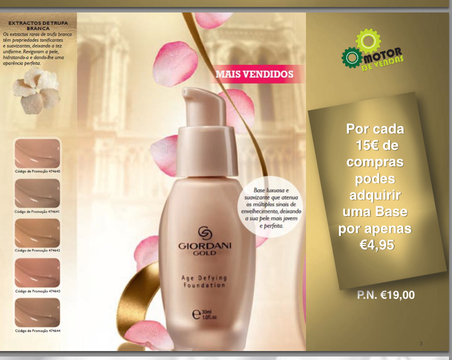 Neste Catálogo, a cada 15€ de valor encomendado, podes adquirir uma base daGiordani Gold por Apenas 4,95€.